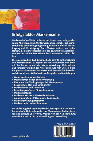 "Unter dem Strich eine gute Mischung aus Praxiswissen, theoretischem Hintergrund und Auflockerungen, die das Lesen dieses Buches mit einem Schmunzeln erleichtern." www.marke.at, 14.04.2008 "Über Markenfindung gibt es praktisch keine Literatur. Die hoch bezahlten Experten wollen sich bei ihrer 'Kunst' nicht in die Karten schauen lassen und sich schon gar nicht der Kritik aussetzen. Bugdahl macht dies und bietet dabei noch Lesespaß." KE - Konstruktion und Engineering, 01/2007 "Gewissermaßen als Bonusmaterial gibt Bugdahl die Kapitel 'Markennamen in der Poesie oder Markenpoesie' [...] und 'Angewandter Markenhumor' dazu und runder damit eine lesenswerte Autorenleistung ab." Horizont, 15.06.2006 "Das Buch ist eine wahre Fundgrube für all diejenigen, die nach reichlich Beispielen für erfolgreiche Namen und Logos aus mehreren Jahrzehnten suchen." www.markenlexikon.com, 11.05.2006 "Es gibt selten ein Buch im gewerblichen Rechtschutz, bei dem man nach sorgfältigem Lesen so viel lernte und sich gleichzeitig amüsierte." GRUR - Gewerblicher Rechtsschutz und Urheberrecht, 03/2006 "Das Buch ist äußerst lesenswert und auch als Freizeit- und Ferienlektüre, im Zug, oder in Verhandlungspausen verwendbar." Mitteilungen der deutschen Patentanwälte, 02/2006 "Kleider machen Leute, und der richtige Markenname bringt den Erfolg. Aber wie findet ein Unternehmer den entscheidenden Begriff? Eine Frage, die Volker Bugdahl, Leiter Marken bei der Degussa AG, unterhaltsam beantwortet." Markt und Mittelstand, 01/2006 "Erfolgreiche Marken sind geistreich, hintersinnig, subtil, fein, elegant, humorvoll. Wie solche Marken kreiert und anschließend recherchiert, geschützt und verwaltet werden, zeigt der Autor in illustrativer Weise anhand vieler praktischer Beispiele. Wer sich mit Marken beschäftigt, für den ist dieses Buch - um es in der (Marken)Sprache des Autors zu sagen - einfach 4züglich, van Tastisch, Herr Vorragend, Unverzicht-Bar." MarkenR, 09/2005