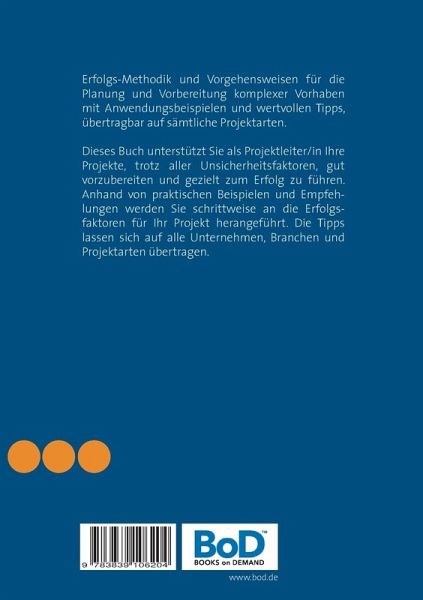 Erfolgs-Methodik und Vorgehensweisen für die Planung und Vorbereitung komplexer Vorhaben mit Anwendungsbeispielen und wertvollen Tipps, übertragbar auf sämtliche Projektarten.Dieses Buch unterstützt Sie als Projektleiter/in Ihre Projekte, trotz aller Unsicherheitsfaktoren, gut vorzubereiten und gezielt zum Erfolg zu führen. Anhand von praktischen Beispielen und Empfehlungen werden Sie schrittweise an die Erfolgsfaktoren für Ihr Projekt herangeführt. Die Tipps lassen sich auf alle Unternehmen, Branchen und Projektarten übertragen.