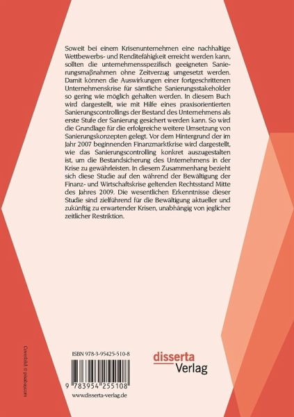 Soweit bei einem Krisenunternehmen eine nachhaltige Wettbewerbs- und Renditefähigkeit erreicht werden kann, sollten die unternehmensspezifisch geeigneten Sanierungsmaßnahmen ohne Zeitverzug umgesetzt werden. Damit können die Auswirkungen einer fortgeschrittenen Unternehmenskrise für sämtliche Sanierungsstakeholder so gering wie möglich gehalten werden. In diesem Buch wird dargestellt, wie mit Hilfe eines praxisorientierten Sanierungscontrollings der Bestand des Unternehmens als erste Stufe der Sanierung gesichert werden kann. So wird die Grundlage für die erfolgreiche weitere Umsetzung von Sanierungskonzepten gelegt. Vor dem Hintergrund der im Jahr 2007 beginnenden Finanzmarktkrise wird dargestellt, wie das Sanierungscontrolling konkret auszugestalten ist, um die Bestandsicherung des Unternehmens in der Krise zu gewährleisten. In diesem Zusammenhang bezieht sich diese Studie auf den während der Bewältigung der Finanz- und Wirtschaftskrise geltenden Rechtsstand Mitte des Jahres 2009. Die wesentlichen Erkenntnisse dieser Studie sind zielführend für die Bewältigung aktueller und zukünftig zu erwartender Krisen, unabhängig von jeglicher zeitlicher Restriktion.