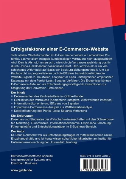 Dennis Ahrholdt untersucht, wie sich die Vertrauensausbildung positiv durch Online-Einzelhändler beeinflussen lässt. Dazu entwickelt er ein vielschichtiges Wirkmodell auf Basis der Strukturgleichungsmethodik. Um die Kaufabsicht zu prognostizieren und die Effizienz transaktionsfördernder Website-Signale zu beurteilen, analysiert er einen umfangreichen empirischen Datensatz mit dem Partial-Least-Squares-Verfahren. Die Ergebnisse können E-Commerce-Akteuren als Entscheidungsgrundlage für Investitionen zur Steigerung der Conversion-Rate dienen.