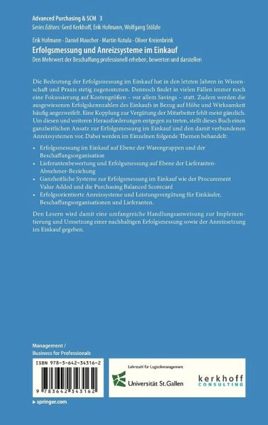 Die Bedeutung der Erfolgsmessung im Einkauf hat in den letzten Jahren in Wissenschaft und Praxis stetig zugenommen. Dennoch findet in vielen Fällen immer noch eine Fokussierung auf Kostengrößen - vor allem Savings - statt. Zudem werden die ausgewiesenen Erfolgskennzahlen des Einkaufs in Bezug auf Höhe und Wirksamkeit häufig angezweifelt. Eine Kopplung zur Vergütung der Mitarbeiter fehlt meist gänzlich. Um diesen und weiteren Herausforderungen entgegen zu treten, stellt dieses Buch einen ganzheitlichen Ansatz zur Erfolgsmessung im Einkauf und den damit verbundenen Anreizsystemen vor. Dabei werden im Einzelnen folgende Themen behandelt: