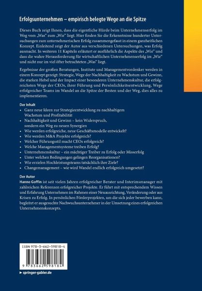 Wenn sich Experten diesem Thema widmen, geht es immer nur um das "Was", jedoch nie wirklich um das "Wie". Ähnlich verhält es sich bei den unzähligen Management-Ratgebern, die den Markt überfluten. Dieses Buch über Unternehmenserfolg macht es anders. Hanno Goffin erklärt Ihnen nicht, was Sie tun müssen, sondern richtet seinen Fokus darauf, wie Sie Ihre Ziele erreichen.