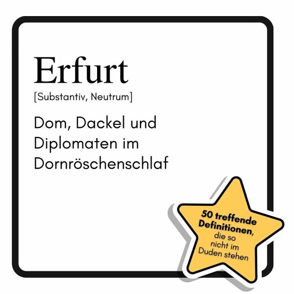 Was passiert, wenn man den Dom, Dackel und Diplomaten in einen Dornröschenschlaf versetzt? "Erfurt: Dom, Dackel und Diplomaten im Dornröschenschlaf" lüftet das Geheimnis der thüringischen Landeshauptstadt - mit 50 witzigen Definitionen und Illustrationen, die zeigen, warum Erfurt mehr ist als nur ein hübsches Postkartenmotiv. Zwischen Krämerbrücke, Puffbohne und Bratwurstschnaps wird die Stadt mit einer Prise Ironie und viel Charme neu entdeckt.Für wen dieses Buch optimal geeignet ist:- Für Erfurt-Fans mit Sinn für Humor und Selbstironie- Für Städtereisende, die mehr als nur Sehenswürdigkeiten suchen- Für alle, die originelle Geschenke liebenEin Buch, das Erfurt von seiner schrägsten Seite zeigt und dabei liebevoll mit Klischees spielt. Perfekt für alle, die wissen wollen, was hinter Domstufen, Waidblau und Dackeldiplom steckt.Was beim Kauf dieses Buches erwartet werden kann:- 50 humorvolle Definitionen zu Erfurt- Passende Illustrationen zu jedem Thema- Ein kreativer Blick auf Stadt, Leute und Legenden- Ideales Geschenk für Erfurt-Liebhaber