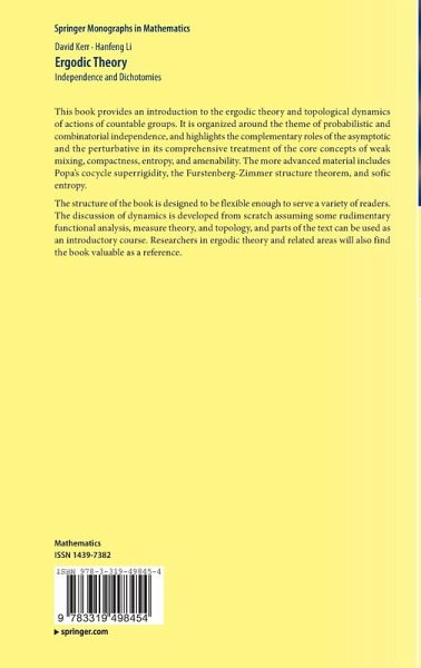 The structure of the book is designed to be flexible enough to serve a variety of readers. The discussion of dynamics is developed from scratch assuming some rudimentary functional analysis, measure theory, and topology, and parts of the text can be used as an introductory course. Researchers in ergodic theory and related areas will also find the book valuable as a reference.