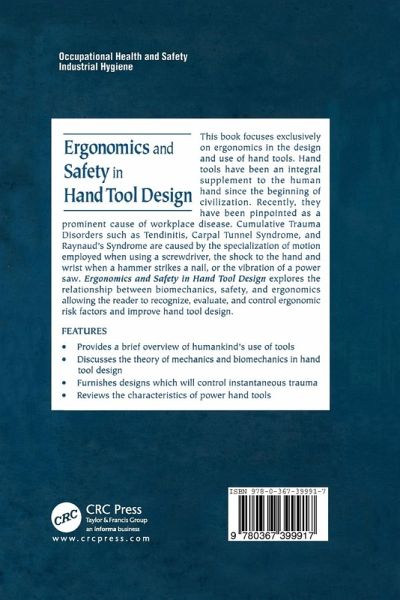 Focusing exclusively on the use of ergonomics in the design and use of hand tools Ergonomics and Safety in Hand Tool Design explores the relationship between Biomechanics, Safety, and Ergonomics allowing the reader to recognize, evaluate, and control ergonomic risk factors and improve hand tool design. The book provides a brief overview of humankind's use of tools and discusses the theory of mechanics and biomechanics in hand tool design. It furnishes designs which will control instantaneous trauma and reviews the characteristics of power hand tools. The text serves as a guide to the human factors in safety and ergonomics for safety professionals.