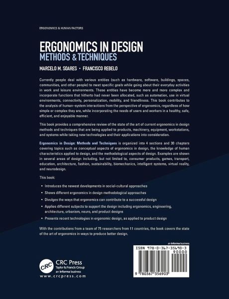 Currently people deal with various entities (such as hardware, software, buildings, spaces, communities and other people), to meet specific goals while going about their everyday activities in work and leisure environments. These entities have become more and more complex and incorporate functions that hitherto had never been allocated such as automation, use in virtual environments, connectivity, personalization, mobility and friendliness. This book contributes to the analysis of human-system interactions from the perspective of ergonomics, regardless of how simple or complex they are, while incorporating the needs of users and workers in a healthy safe, efficient and enjoyable manner. This book provides a comprehensive review of the state of the art of current ergonomic in design methods and techniques that are being applied to products, machinery, equipment, workstations and systems while taking new technologies and their applications into consideration.¿ Ergonomics in Design: Methods and Techniques is organized into four sections and 30 chapters covering topics such as conceptual aspects of ergonomics in design, the knowledge of human characteristics applied to design, and the methodological aspects of design. Examples are shown in several areas of design including, but not limited to, consumer products, games, transport, education, architecture, fashion, sustainability, biomechanics, intelligent systems, virtual reality, and neurodesign. This book will: Introduces the newest developments in social-cultural approaches Shows different ergonomics in design methodological approaches Divulges the ways that ergonomics can contribute to a successful design Applies different subjects to support the design including -ergonomics, engineering, architecture, urbanism, neuro, and product designs. Presents recent technologies in ergonomic design, as applied to product design. With the contributions from a team of 75 researchers from 11 countries, the book covers the state-of-the-art of ergonomics in a way to produce better design.