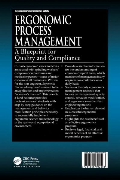 This exceptional guidebook provides the strategies necessary to curtail ergonomic losses and costs associated with spiraling worker's compensation premiums and medical expenses, of major concern in all businesses. Ergonomic Process Management is meant to be an application and implementation "operator's manual". This one-of-a-kind resource provides professionals and students with step-by-step guidance on the management and behavior modification principles necessary to successfully implement ergonomic science and technology into the real world occupational environment.