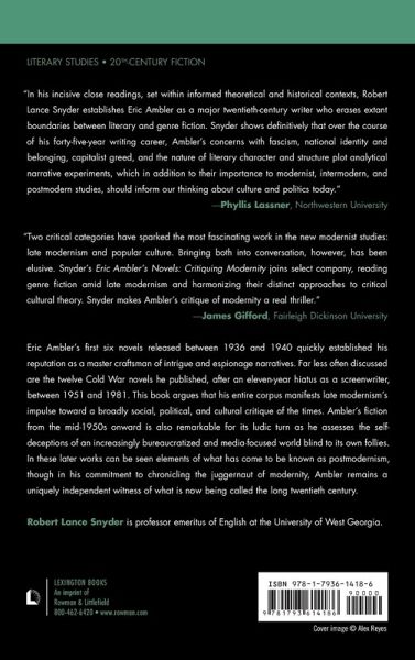 Bridging what is often perceived as a divide between the thriller and literary fiction, Eric Ambler's eighteen novels undertake a wide-ranging critique of modernity. Among the twentieth-century developments he examines are totalitarianism, corporatism, espionage, social Darwinism, terrorism, political autocracy, and foreign intervention.