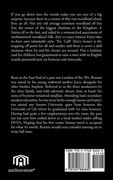 If you go down into the woods today you are sure of a big surprise, because there in a corner of this vast woodland abode lives an elf. Not any old average common woodland elf but Eric the owner of the biggest charisma in the Kingdom. A Fairies elf to the last, and aided by a mismatched assortment of multinational woodland folk, they re-enact famous Fairy-tales in their own inimitable style. The 'Gaff' (Eric's home) is the stopping off point for all and sundry and there is never a dull moment when he and his chums are around. Not a bedtime read for children, but guaranteed to raise a titter with its English seaside postcard/carry on humour and innuendo.