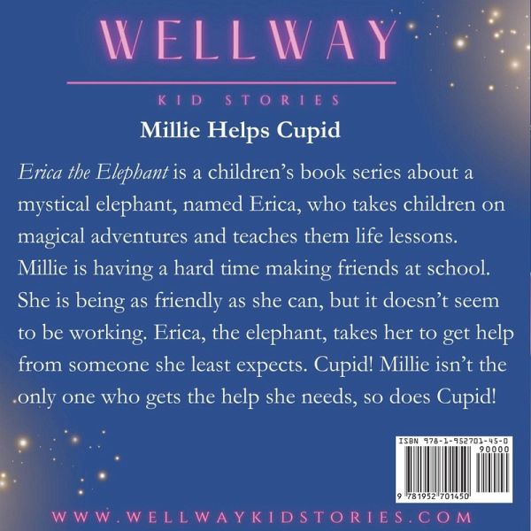 Erica the Elephant is a children's book series about a mystical elephant, named Erica, who takes children on magical adventures and teaches them life lessons. Millie is having a hard time making friends at school. She is being as friendly as she can, but it doesn't seem to be working. Erica the elephant takes her to get help from someone she least expects. Cupid! Millie isn't the only one who gets the help she needs, so does Cupid!