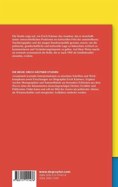 Die Studie untersucht erstmals systematisch Erich Kästners bislang nur marginal erforschte Rolle als Intellektueller nach dem Zweiten Weltkrieg. Ausgehend von der Annahme der Intellektuellensoziologie, dass Reichweite und Wirkungschancen eines Intellektuellen maßgeblich von dem Prestige abhängen, das er in seinem eigentlichen Tätigkeitsbereich gewonnen hat, beleuchtet die Verfasserin zunächst die Nachkriegskarriere Kästners und seine unterschiedlichen Positionen im kulturellen Feld. Daran anknüpfend zeigt sie auf, wie Kästner den Einfluss und die Bekanntheit, die er als Schriftsteller, Journalist und PEN-Präsident erlangen konnte, nutze, um sich innerhalb (kultur-)politischer Diskurse öffentlich zu positionieren. Im Fokus steht dabei seine Auseinandersetzung mit der deutschen Schuldfrage, seine Kritik an personellen und mentalen Kontinuitäten des NS-Regimes und sein Einsatz für den Frieden. Durch die konsequente Berücksichtigung der historischen und diskursiven Kontexte seiner Stellungnahmen offeriert die Studie nicht nur neue Erkenntnisse für die Kästner-Forschung, sondern erweitert zugleich auch die literatur-, zeit- und intellektuellengeschichtliche Perspektive auf die unmittelbaren Nachkriegsjahre und die junge Bundesrepublik.