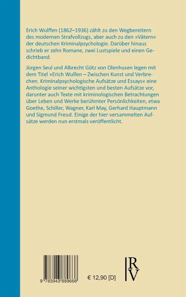 Erich Wulffen (1862¿1936) zählt zu den Wegbereitern des modernen Strafvollzugs, aber auch zu den »Vätern« der deutschen Kriminalpsychologie. Darüber hinaus schrieb er zehn Romane, zwei Lustspiele und einen Gedichtband. Jürgen Seul und Albrecht Götz von Olenhusen legen mit dem Titel »Erich Wulfen ¿ Zwischen Kunst und Verbrechen. Kriminalpsychologische Aufsätze und Essays« eine Anthologie seiner wichtigsten und besten Aufsätze vor, darunter auch Texte mit kriminologischen Betrachtungen über Leben und Werke berühmter Persönlichkeiten, etwa Goethe, Schiller, Wagner, Karl May, Gerhard Hauptmann und Sigmund Freud. Einige der hier versammelten Aufsätze werden nun erstmals veröffentlicht.