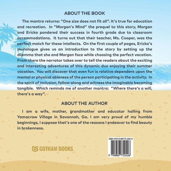 This is part 2 in a series about two bosom buddies, Morgan and Ericka. The first book, "Morgan's Mind" introduced the characters as they began fourth grade. After a successful school year, it is now time for the best friends to enjoy the summer break. Ericka happens to be wheelchair bound yet she is a free spirit. They find the perfect recreational campsite to have a wonderful vacation that accommodates children with mobility challenges. Read along and enjoy the trip!