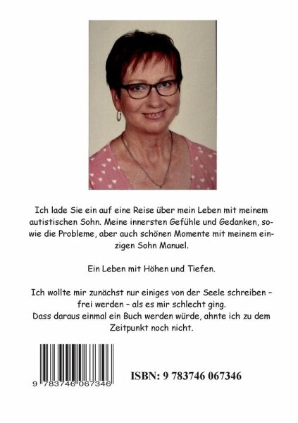 Ich lade Sie ein auf eine Reise über mein Leben mit meinem autistischen Sohn. Meine innersten Gefühle und Gedanken, sowie die Probleme, aber auch schönen Momente mit meinem einzigen Sohn Manuel. Ein Leben mit Höhen und Tiefen.Ich wollte mir zunächst nur einiges von der Seele schreiben - frei werden - als es mir schlecht ging.