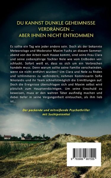 die Gänge kommen will. Wahrscheinlich wurde er einfach verlassen. Nach mehreren weiteren…mehrMaxim Fuchs Leben wird plötzlich auf den Kopf gestellt, als der Wettermoderator am späten Abend heimkehrt und das Haus verlassen vorfindet. Wo sind Frau und Tochter? Nach dem Abtelefonieren von Freunden, Bekannten, Familie und Krankenhäusern, bleibt nur der Weg zur Polizei, die aber nicht recht in die Gänge kommen will. Wahrscheinlich wurde er einfach verlassen. Nach mehreren weiteren Vorkommnissen, rückt Maxim allerdings schnell in den Fokus der Polizei, deuten doch recht viele Indizien und Zeugenaussagen auf ihn als Täter. Der versucht nicht nur selbst hinter die Ereignisse zu kommen, sondern zweifelt auch zunehmend an seinem Verstand. Die Geschichte wird aus der wechselnden Sicht der Ermittlerin und von Maxim erzählt. Dazwischen wird die Lebensgeschichte einer dritten Person aufgerollt, von seiner schrecklichen Kindheit, über das einsame, nicht minder schreckliche Aufwachsen und seinem erwachsenen Ich. Dabei werden die Handlungsstränge übereinander gelegt und zu einem sowohl tragischen wie auch versöhnlichen Ende zusammengeführt. Gut konstruiert, spannend erzählt. Man legt das Buch vor dem Schluss nicht mehr aus der Hand.