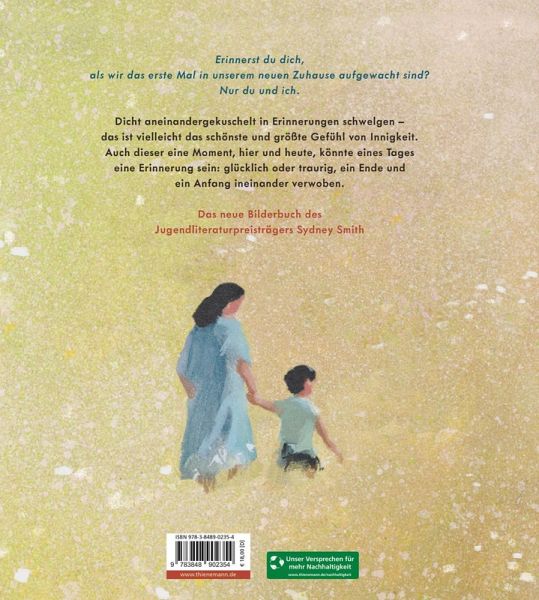 Dicht aneinandergekuschelt tauschen Mutter und Sohn Erinnerungen aus. Manche idyllisch und fröhlich wie das Picknick mit dem Vater, andere aufregend wie der Sturz vom Fahrrad in einen weichen Heuhaufen oder das große Unwetter mit Stromausfall. Jetzt sind sie nur noch zu zweit und das Haus, in dem all diese Erinnerungen entstanden, ist weit weg. Aber vielleicht wird auch dieser Moment eines Tages eine schöne Erinnerung sein: glücklich und traurig, ein Ende und ein Anfang ineinander verwoben.