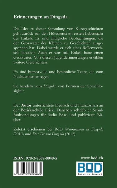 Die Idee zu dieser Sammlung von Kurzgeschichten geht zurück auf den Hütedienst im ersten Lebensjahr des Enkels. Es sind alltägliche Beobachtungen, die der Grossvater des Kleinen zu Geschichten ausgesponnen hat. Dabei wurde er sich eines Rollenwechsels bewusst: Auch er war mal Enkel, hatte einen Grossvater. Von diesen Jugenderinnerungen erzählen weitere Geschichten.Es sind humorvolle und besinnliche Texte, die zum Nachdenken anregen. Sie handeln vom "Dingsda", von Formen der Sprachlosigkeit.