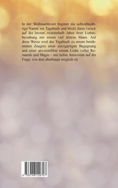 In der Weihnachtszeit beginnt die achtzehnjährige Naemi ein Tagebuch und blickt darin zurück auf die letzten zweieinhalb Jahre ihrer Liebesbeziehung mit einem viel älteren Mann. Auf diese Weise wird das Tagebuch zu einem berührenden Zeugnis einer einzigartigen Begegnung und einer unvorstellbar reinen Liebe voller Romantik und Magie - mit tiefen Antworten auf die Frage, wie dies überhaupt möglich ist.