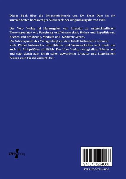 Dieses Buch über die Erkenntnistheorie von Dr. Ernst Dürr ist ein unveränderter, hochwertiger Nachdruck der Originalausgabe von 1910.