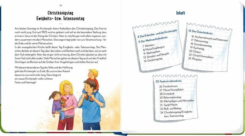 Im Frühling feiern wir Ostern, im Herbst Erntedank und im Winter Weihnachten - die Feste und Feiertage geben dem ganzen Jahr Struktur. Was aber feiern wir eigentlich an Himmelfahrt und Pfingsten? Was an Fronleichnam und Allerheiligen? Und wer waren Sankt Martin oder der heilige Nikolaus? Mit leicht verständlichen Worten und farbenfrohen Bildern erklären Margret Nußbaum und Kerstin M. Schuld die 21 wichtigsten Feste und Feiertage des Jahres. Mit seinen stabilen Seiten richtet sich das Buch an Kinder ab 4 Jahren und ist ein idealer Begleiter durch das Jahr - für die ganze Familie.