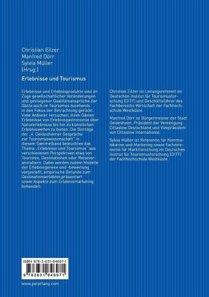 Christian Eilzer ist Leitungsreferent im Deutschen Institut für Tourismusforschung (DITF) und Geschäftsführer des Fachbereichs Wirtschaft der Fachhochschule Westküste. Manfred Dörr ist Bürgermeister der Stadt Deidesheim, Präsident der Vereinigung Cittaslow Deutschland und Vizepräsident von Cittaslow International. Sylvia Müller ist Referentin für Kommunikation und Marketing sowie Fachreferentin für Marktforschung im Deutschen Institut für Tourismusforschung (DITF) der Fachhochschule Westküste.