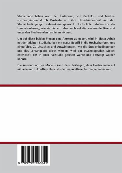 Erlebte Studierbarkeit. Seit der Einführung von Bachelor- und Masterstudiengängen hat sich die europäische Hochschullandschaft auf vielfältige Weise verändert. Auch in Deutschland haben Studierende durch Proteste auf ihre Unzufriedenheit mit den Studienbedingungen aufmerksam gemacht. Hochschulen stehen vor der Herausforderung, wie sie hierauf, aber auch auf die wachsende Diversität unter den Studierenden reagieren können.Um hierauf eine Antwort zu geben, wird in dieser Arbeit mit der erlebten Studierbarkeit ein neuer Begriff in die bisherige Hochschulforschung eingeführt. Unter erlebter Studierbarkeit wird dabei verstanden, wie Studierende die Studierbarkeit des Lehrangebotes erleben. Zu Ursachen und Auswirkungen dieses Erlebens wird ein psychologisches Modell entwickelt, das die Beanspruchung und Zufriedenheit der Studierenden in den Mittelpunkt stellt und gleichzeitig die Diversität unter Studierenden berücksichtig. Ferner wird ein Ausblick auf eine Fallstudie gegeben, in der dieses theoretische Modell empirisch getestet und bestätigt werden konnte.Die Anwendung, Weiterentwicklung und Validierung des hier entwickelten Modells erlebter Studierbarkeit kann dazu beitragen, dass Hochschulen auf aktuelle und zukünftige Herausforderungen effizienter reagieren können.
