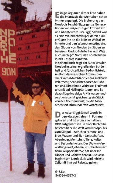 Einige Regionen der Erde haben die Phantasie der Menschen schon immer angeregt. Die Eroberung des Nordpols beschäftigte ganze Generationen von wagemutigen Entdeckern und Abenteurern. Bei Siggi Sawall war es eine Weihnachtskugel, deren blauer Glanz ihn an die Erde im Weltall erinnerte und den Wunsch entzündete, den Globus von Norden bis Süden zu bereisen. In seinem Buch zeigt der Autor uns den Nordpol in seiner ergreifenden Schönheit und fürchterlichen Bedrohlichkeit. An Bord des russischen Atomeisbrechers Yamal durchfährt er das grollende Polarmeer, beobachtet dösende Eisbären und kämpfende Walrosse. Er nimmt uns mit auf Helikoptertouren und Badeausflüge ins eisige Arktiswasser und zeigt uns damit gleichzeitig ein Stück von der Abenteuerlust, die die Menschen seit Jahrhunderten vorantreibt.