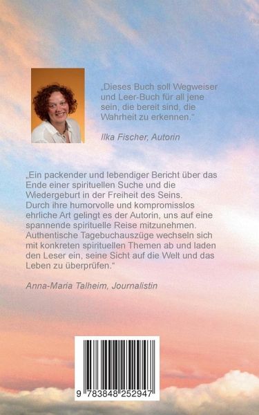 "Ein packender und lebendiger Bericht über das Ende einer spirituellen Suche und die Wiedergeburt in der Freiheit des Seins.Durch ihre humorvolle und kompromisslos ehrliche Art gelingt es der Autorin, uns auf eine spannende spirituelle Reise mitzunehmen. Authentische Tagebuchauszüge wechseln sich mit konkreten spirituellen Themen ab und laden den Leser ein, seine Sicht auf die Welt und das Leben zu überprüfen."Anna-Maria Talheim, Journalistin