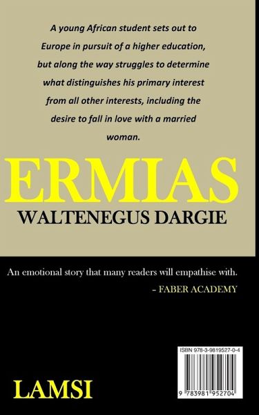 Many young people and their families sacrifice a lot for the sake of pursuing a good education. Some leave their loved ones and dear friends behind to cross boundaries and even oceans, besides footing the bill for college education. But what if, in spite of apparent academic success, and with it improved career prospects, you still wonder where your life is headed? What if your new reality doesn't match your expectations, and instead of mere homesickness, you succumb to loneliness, instead of fulfilling your dreams, you flounder for want of direction and wholeness? ERMIAS is a story about a young African student who comes to Europe in pursuit of a good education, but along the way struggles to determine what differentiates his primary desire from all other desires, including the desire to fall in love with a married woman…