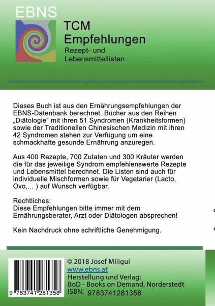 EBNS - Ernährungsberatung nach Syndromen - Rezepte- und Lebensmittellisten für die Ernährungstherapie der Traditionellen Chinesischen Medizin (TCM) bei Herz - Yang Mangel. Herz Qi u Yang stärken, wärmen, Blut u QI bewegen. - kalt NEIN, heiß WENIG (süß JA), alles andere JA (bitterwarm u sauer-erfrischend WENIG). Die Rezepte sollen das betroffene Syndrom unterstützen und durch guten Geschmack motivieren. Die Lebensmittel werden in Kategorien empfehlenswert, ja, weniger und nein angezeigt und helfen bei der Orientierung, wenn eigene Rezepte gekocht werden sollen.
