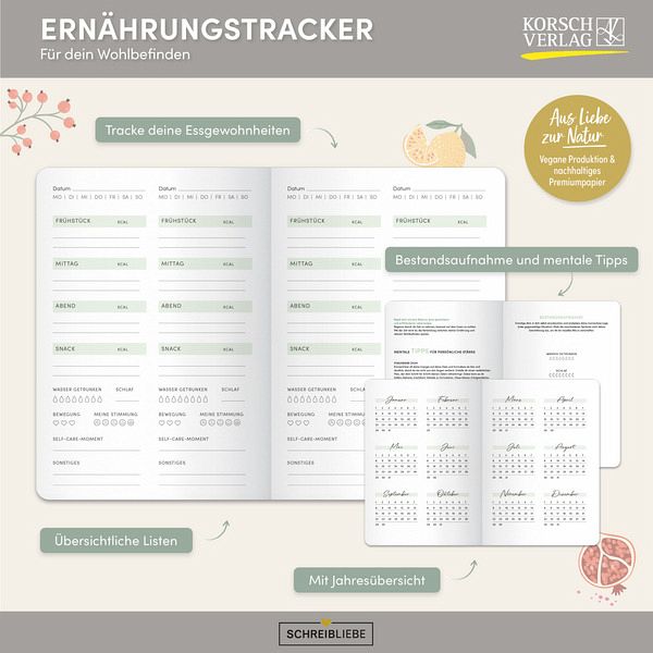 Nimm dir Zeit, bewusst auf deine Ernährung zu achten und mache eine Bestandsaufnahme deiner aktuellen Essgewohnheiten. Dieser Ernährungstracker gibt dir die wertvolle Chance, deine Ernährung zu optimieren und dich rundherum wohler zu fühlen. Denn du bist es wert!