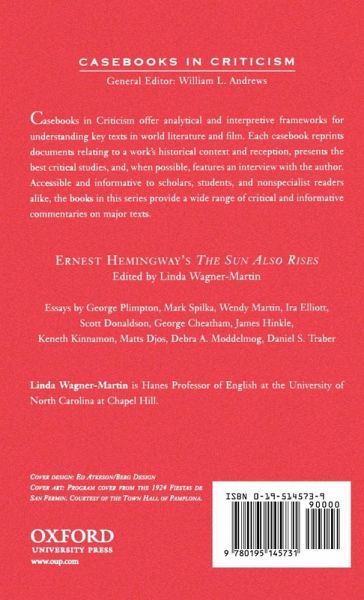 Still the most popular of Hemingway's books, The Sun also Rises captures the quintessential romance of the expatriate Americans and Britons in Paris after World War I. The text provides a way for discussions of war, sexuality, personal angst, and national identity to be linked inextricably with the stylistic traits of modern writing. This Casebook, edited by one of Hemingway's most eminent scholars, presents the best critical essays on the novel to be published in the last half century. These essays address topics as diverse as sexuality, religion, alcoholism, gender, Spanish culture, economics, and humor. The volume also includes an interview with Hemingway conducted by George Plimpton.