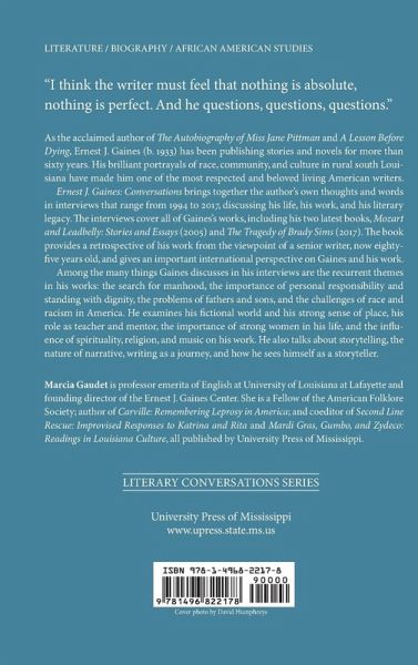 As the acclaimed author of The Autobiography of Miss Jane Pittman and A Lesson Before Dying, Ernest J. Gaines (b. 1933) has been publishing stories and novels for more than sixty years. His brilliant portrayals of race, community, and culture in rural south Louisiana have made him one of the most respected and beloved living American writers. Ernest J. Gaines: Conversations brings together the author's own thoughts and words in interviews that range from 1994 to 2017, discussing his life, his work, and his literary legacy. The interviews cover all of Gaines's works, including his two latest books, Mozart and Leadbelly: Stories and Essays (2005) and The Tragedy of Brady Sims (2017). The book provides a retrospective of his work from the viewpoint of a senior writer, now eighty-five years old, and gives an important international perspective on Gaines and his work. Among the many things Gaines discusses in his interviews are the recurrent themes in his works: the search for manhood, the importance of personal responsibility and standing with dignity, the problems of fathers and sons, and the challenges of race and racism in America. He examines his fictional world and his strong sense of place, his role as teacher and mentor, the importance of strong women in his life, and the influence of spirituality, religion, and music on his work. He also talks about storytelling, the nature of narrative, writing as a journey, and how he sees himself as a storyteller.