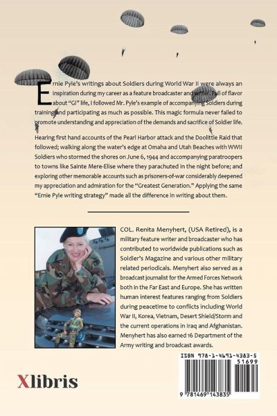 Ernie Pyle's writings about Soldiers during World War II were always an inspiration during my career as a feature broadcaster and writer. Full of flavor about "GI" life, I followed Mr. Pyle's example of accompanying Soldiers during training and participating as much as possible. This magic formula never failed to promote understanding and appreciation of the demands and sacrifice of Soldier life. Hearing first hand accounts of the Pearl Harbor attack and the Doolittle Raid that followed; walking along the water's edge at Omaha and Utah Beaches with WWII Soldiers who stormed the shores on June 6, 1944 and accompanying paratroopers to towns like Sainte Mere-Elise where they parachuted in the night before; and exploring other memorable accounts such as prisoners-of war considerably deepened my appreciation and admiration for the "Greatest Generation." Applying the same "Ernie Pyle writing strategy" made all the difference in writing about them.