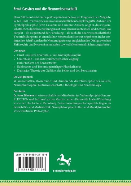 Hans Zillmann leistet einen philosophischen Beitrag zur Frage nach den Möglichkeiten und Grenzen eines neurowissenschaftlichen Subjektbegriffs. Anhand der Symbolphilosophie Ernst Cassirers und anderer Ansätze zeigt er, dass wissenschaftliche Subjektbeschreibungen auf zwei Ebenen kontextuell sind: Sowohl das Subjekt - als Gegenstand der Forschung - als auch die neurowissenschaftliche Theoriebildung sind in einen kultur-historischen Kontext eingebettet. In der vorliegenden Schrift werden die Notwendigkeit eines ausgleichenden Dialogs zwischen Philosophie und Neurowissenschaften sowie die Kontextualität herausgearbeitet.