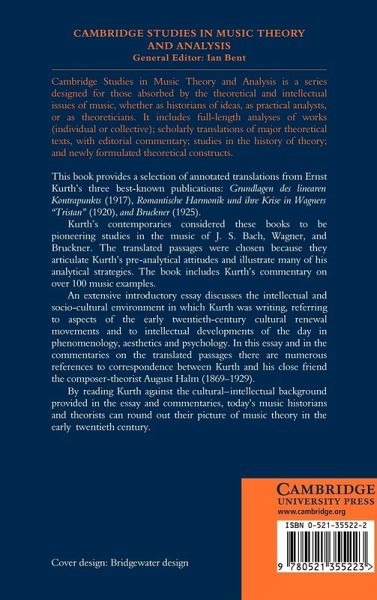 This book provides extensive annotated translations of the writings of the music theorist Ernst Kurth (1886 1946).