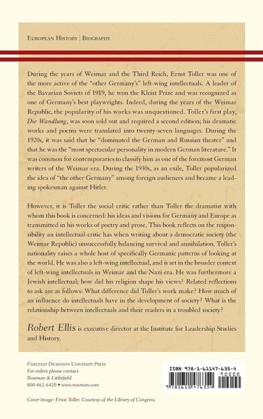During the years of Weimar and the Third Reich, Toller was one of the more active of the "other Germany's" left-wing intellectuals. A leader of the Bavarian Soviet of 1919, he had in addition won the Kleist prize and was recognized as one of Germany's best playwrights. Indeed, during the years of the Weimar Republic, the popularity of his works was unquestioned. His first play, Die Wandlung, was soon sold out and required a second edition; his dramatic works and poems were translated into twenty-seven languages. During the 1920's it was said that he "dominated the German and Russian theatre" and that he was the "most spectacular personality in modern German literature." It was common for contemporaries to classify him as one of the foremost German writers of the Weimar era. During the 1930s, as an exile, he popularized to foreign audiences the idea of "the other Germany"and became a leading spokesman against Hitler. However, it is Toller the social critic rather than Toller the dramatist with which thisbook is concerned, his ideas, his visions for Germany and Europe as transmitted in his works of fiction and prose. The book reflects on the responsibility an intellectual-critic has when writing about a democratic society (the Weimar Republic) that is unsuccessfully balancing between survival and annihilation. Toller was furthermore a Jewish intellectual. How did his religious traditions shape his views? He was also German and this raises a whole host of specifically Germanic patterns of looking at the world. He was also a left-wing intellectual and Toller is set in the broader context of left-wing intellectuals in Weimar and the Nazi era. A related reflection is to ask: so what? What difference did it make? How much of an influence do intellectuals have in the development of society? What is the relationship between intellectuals and their readers in a troubled society?