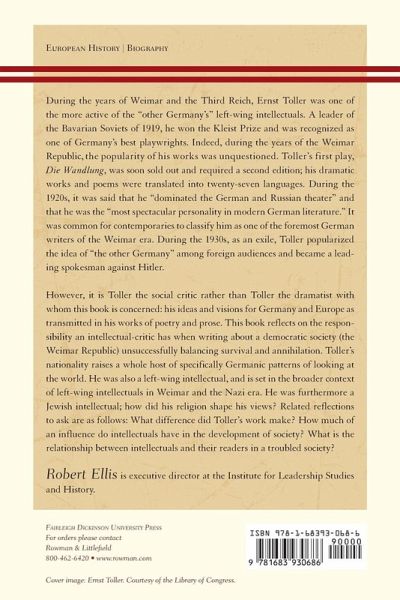 During the years of Weimar and the Third Reich, Toller was one of the more active of the "other Germany's" left-wing intellectuals. A leader of the Bavarian Soviet of 1919, he had in addition won the Kleist prize and was recognized as one of Germany's best playwrights. Indeed, during the years of the Weimar Republic, the popularity of his works was unquestioned. His first play, Die Wandlung, was soon sold out and required a second edition; his dramatic works and poems were translated into twenty-seven languages. During the 1920's it was said that he "dominated the German and Russian theatre" and that he was the "most spectacular personality in modern German literature." It was common for contemporaries to classify him as one of the foremost German writers of the Weimar era. During the 1930s, as an exile, he popularized to foreign audiences the idea of "the other Germany"and became a leading spokesman against Hitler. However, it is Toller the social critic rather than Toller the dramatist with which thisbook is concerned, his ideas, his visions for Germany and Europe as transmitted in his works of fiction and prose. The book reflects on the responsibility an intellectual-critic has when writing about a democratic society (the Weimar Republic) that is unsuccessfully balancing between survival and annihilation. Toller was furthermore a Jewish intellectual. How did his religious traditions shape his views? He was also German and this raises a whole host of specifically Germanic patterns of looking at the world. He was also a left-wing intellectual and Toller is set in the broader context of left-wing intellectuals in Weimar and the Nazi era. A related reflection is to ask: so what? What difference did it make? How much of an influence do intellectuals have in the development of society? What is the relationship between intellectuals and their readers in a troubled society?