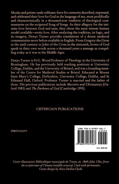Monks and priests - male celibates - have for centuries described, expressed, and celebrated their love for God in the language of sex, most prolifically and characteristically in a thousand-year tradition of theological commentaries on the scriptural Song of Songs. As their allegory for the intimate love between God and man, they chose the most intense human model available - erotic love. After analyzing the tradition, its logic, and its imagery, Denys Turner provides translations of a dozen medieval commentaries never before available in English. From Gregory the Great in the sixth century to John of the Cross in the sixteenth, lovers of God speak in their own words across a thousand years a message as compelling today as it was in the Middle Ages.
