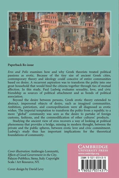 Eros and Polis examines how and why Greek theorists treated political passions as erotic. Because of the tiny size of ancient Greek cities, contemporary theory and ideology could conceive of entire communities based on desire. A recurrent aspiration was to transform the polity into one great household that would bind the citizens together through ties of mutual affection. In this study, Paul Ludwig evaluates sexuality, love and civic friendship as sources of political attachment and as bonds of political association. Studying the ancient view of eros recovers a way of looking at political phenomena that provides a bridge, missing in modern thought, between the private and public spheres, between erotic love and civic commitment. Ludwig's study thus has important implications for the theoretical foundations of community.