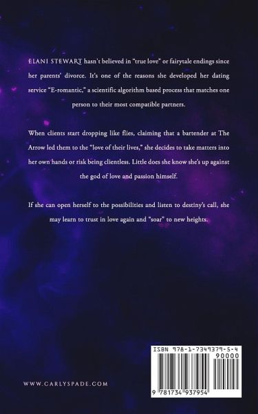 Elani Stewart hasn't believed in "true love" or fairytale endings since her parents' divorce. It's one of the reasons she developed her dating service "E-romantic", a scientific algorithm based process that matches one person to their most compatible partners. ¿ When clients start dropping like flies, claiming that a bartender at The Arrow led them to the "love of their lives", she decides to take matters into her own hands or risk being clientless. Little does she know she's up against the god of love and passion himself. ¿ If she can open herself to the possibilities and listen to destiny's call she may learn to trust in love again and "soar" to new heights.¿