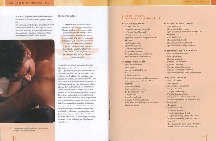 Partnermassage ist einer der schönsten Wege, das Bedürfnis nach Zärtlichkeit, Hautkontakt und körperlicher Nähe zu befriedigen und verhilft Paaren zu einer tieferen Intimität.Maria Kettenring führt die Leser behutsam und motivierend an die Massage heran: Die ersten Schritte schaffen Vertrauen und wecken Neugierde auf mehr. Das ausführliche Kapitel über Massagetechniken für alle Körperbereiche wird abgerundet durch inspirierende Vorschläge für bestimmte Gelegenheiten, vom Massage-Kurzprogramm bis zum Day Spa für Zwei, bei denen nicht nur Techniken, sondern Phantasie, Intuition und Rituale sowie ätherische Öle und aphrodisierende Drinks eine Rolle spielen. So wird Massage zu einem entspannenden oder erregenden (Liebes-)Spiel. Die ansprechende, sinnliche Bebilderung macht noch mehr Lust auf diese sinnliche Reise für Zwei.