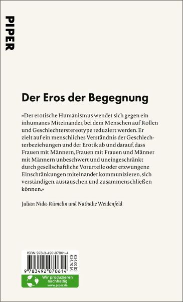 Dieses Buch diskutiert ethische und philosophische Aspekte der Geschlechterbeziehungen. Es plädiert für einen Erotischen Humanismus, für ein humanes und kooperatives Verhältnis der Geschlechter und eine entspannte Erotik, für gleichen Respekt und gleiche Anerkennung, für das Recht auf Privatheit und Differenz, damit alle Menschen - unabhängig von ihrem Geschlecht und ihrer Lebensform - Autorinnen und Autoren ihres Lebens sein können.