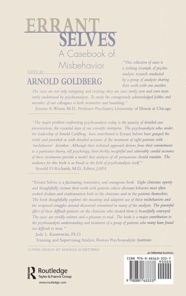 Guided by the self-psychological framework developed by Arnold Goldberg in Being of Two Minds (TAP, 1999), the contributors to Errant Selves explore cases of perversion, delinquency, and addiction in which the misbehavior at issue served primarily to ward off painful affects or states of dysphoria in order to achieve a basic integrity of the self. For these patients, the pathway to self-cohesion entailed the florid acting out typical of narcissistic behavior disorders. But these patients not only derived feelings of strength and even pleasure from their conduct; they were simultaneously repulsed by their own perverse and aberrant behavior. Following Goldberg's theoretical framework, this troubling state of affairs is understood in terms of "vertical splits" and the psychology of disavowal. For patients with "errant selves, " that is, the psychodynamics of disavowal have shaped development to the point that they end up living parallel lives with different values, ambitions, and goals.