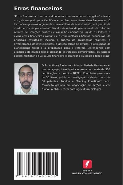 "Erros financeiros: Um manual de erros comuns e como corrigi-los" oferece um guia completo para identificar e resolver erros financeiros frequentes. O livro abrange erros orçamentais, armadilhas de investimento, má gestão da dívida, erros de planeamento fiscal e desafios de planeamento da reforma. Através de soluções práticas e conselhos acionáveis, ajuda os leitores a evitar erros financeiros comuns e a criar melhores hábitos financeiros. As principais estratégias incluem a criação de orçamentos realistas, a diversificação de investimentos, a gestão eficaz de dívidas, a otimização do planeamento fiscal e a preparação para a reforma. Aprendendo com exemplos do mundo real e aplicando estratégias comprovadas, os leitores podem melhorar a sua saúde financeira e alcançar o sucesso a longo prazo.