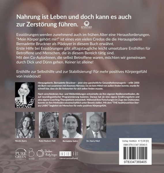 Nahrung ist Leben und doch kann es auch zur Zerstörung führen. Essstörungen wird zunehmend auch im frühen Alter eine Herausforderungen. "Mein Körper gehört mir!" ist eines von vielen Credos die die Herausgeberin Bernadette Bruckner als Plädoyer in diesem Buch erwähnt. Erste Hilfe bei Essstörungen gibt alltagstaugliche leicht umsetzbare Ersthilfen für Betroffene und Menschen, die in diesem Bereich tätig sind. Mit den Co-AutorInnen, die selbst Betroffene waren, möchten wir gemeinsam durch Dick und Dünn gehen. Keiner ist alleine! Ersthilfe zur Selbsthilfe und zur Stabilisierung!