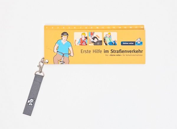 Freundlich, übersichtlich, machbar - der "kleiner Retter" ist ein Erste Hilfe Ratgeber im Fächerformat mit 55 freundlich gestalteten Illustrationen. Er überzeugt durch sein sympathisches Design und aktuelle Inhalte gemäß der europäischen Richtlinien (ERC) und ist zusätzlich durch die Stiftung Gesundheit zertifiziert.Der "kleine Retter" ist reduziert auf klare Anweisungen und schnell erfassbare Bilder - er kann keinen Erste Hilfe Kurs ersetzen, aber er ermutigt den Leser, sich außerhalb von Notfallsituationen mit diesem Thema zu beschäftigen. Dank seiner Textilschlaufe ist er jederzeit griffbereit. So bleibt er im Alltag stets präsent : z.B. am Schlüsselbrett oder Handschuhfach und verschwindet nicht im Bücherregal. Wir haben viel Know how und Energie in dieses Projekt gesteckt, um einen emotionalen Mehrwert zu schaffen, der sich auch verschenken lässt !Den Retter gibt es in 3 verschiedenen Versionen - Erste Hilfe für Kinder, für den Straßenverkehr und für die Reise. Jede Versionzeigt anhand von 55 Illustrationen zum einem die Grundlagen der Ersten Hilfe zum anderen die Maßnahmen bei speziellen Notfällen. Die Retter sind auf Karton gedruckt, die Schutzhülle ist vollständig biologisch abbaubar.