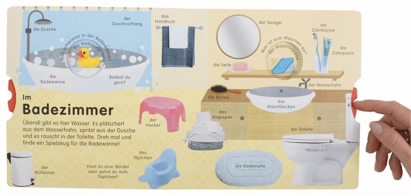 Mit dem richtigen Dreh gibt es zu Hause viel zu entdecken! Dieses charmante Bilderbuch bietet jede Menge Stöber-, Lern- und Beschäftigungsspaß für Kleinkinder ab 2 Jahren.