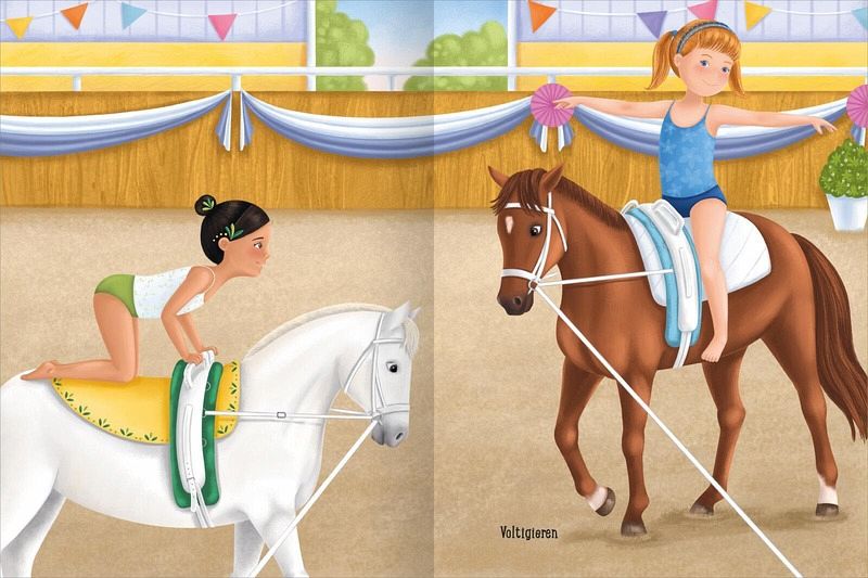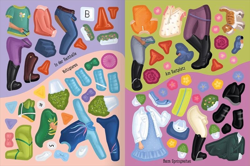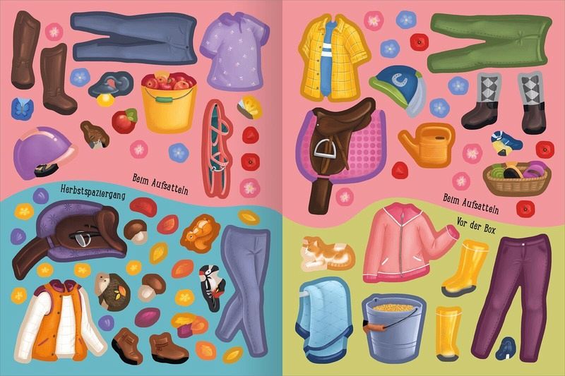 Willkommen in der aufregenden Welt der Pferde und Ponys! Wähle aus über 250 Aufklebern, erwecke die bunten Szenen rund ums Reiten zum Leben und ziehe allen tolle Outfits an.