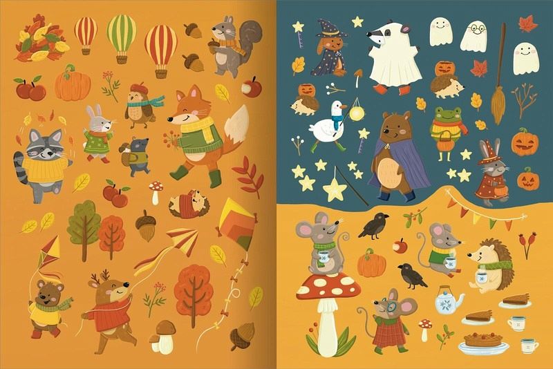 Dieses Stickerbuch mit über 300 kunterbunten Aufklebern zum Thema Herbst eignet sich für Kinder ab 3 Jahren. Ob im Wald, auf der Wiese beim Drachensteigen oder im Park beim Kastaniensammeln: Die Herbst-Szenen warten darauf, mit den Stickermotiven beklebt zu werden.